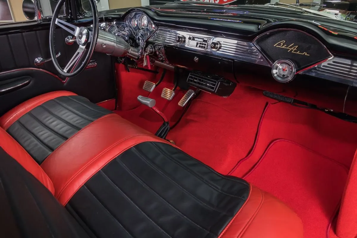 Inside, the car features leather front and rear seats, custom gauges, billet aluminum pedals, electric windows, a Hurst shifter, and a clean, color-matched dash. Polished chrome bumpers, crisp stainless trim, and excellent paintwork reflect the attention to detail throughout. With fewer than 150 miles driven since its restoration, this Bel Air offers a rare blend of power and presentation, ideal for both cruising and collecting.