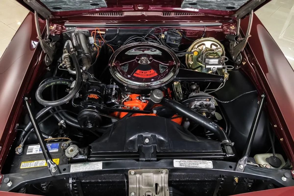 Powered by a Chevrolet 327ci V8 paired with a Muncie M20 4-speed manual transmission, this Camaro also includes power steering, power front disc brakes, and factory-style dual exhaust. The car rides on 15” Rally wheels wrapped in redline BFGoodrich tires and features a 10-bolt rear end with 3.07 gearing.