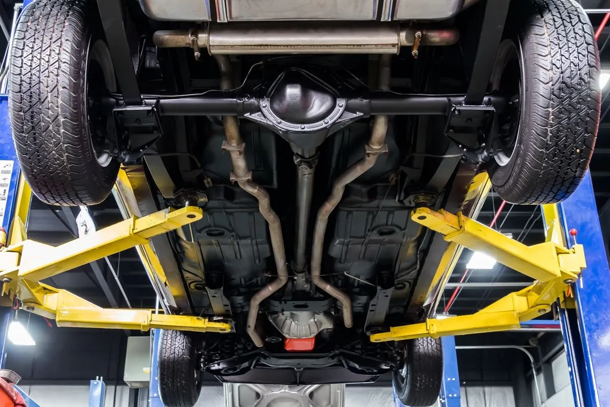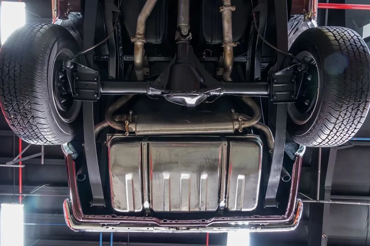 The body is straight with excellent panel fitment, a cowl hood, beautiful chrome, and clean moldings throughout. Underneath, the frame and floor pans are solid and painted, with new brake and fuel lines, muffler, and gas tank.