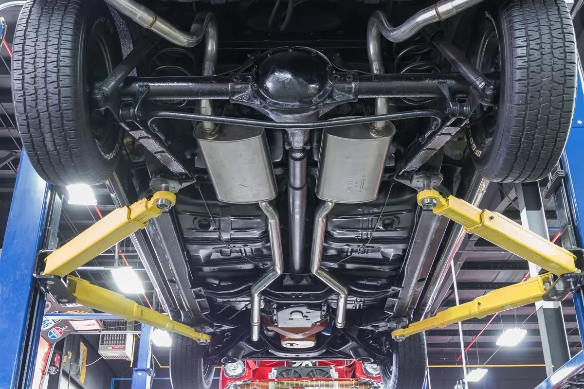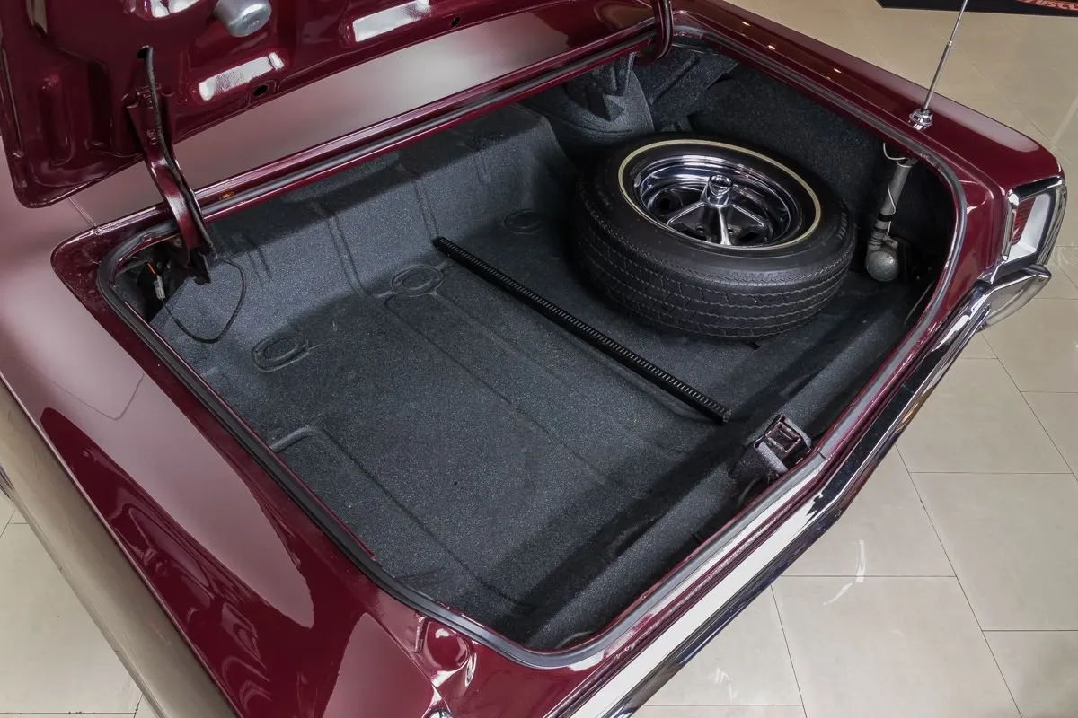 The dual exhaust system with MagnaFlow mufflers delivers a deep, classic tone. Front and rear sway bars, new shocks, and fresh suspension components provide a confident ride. The convertible top is power-operated and includes a matching boot for a clean look when down.