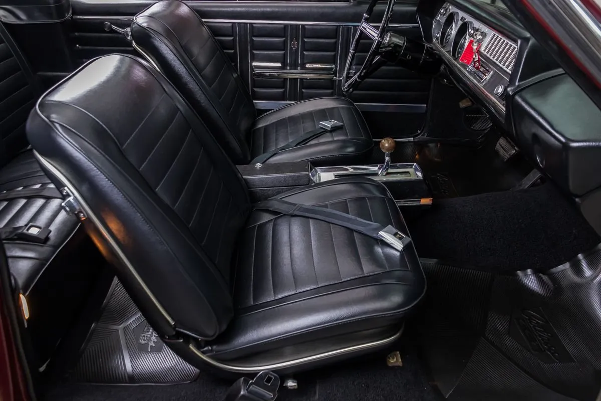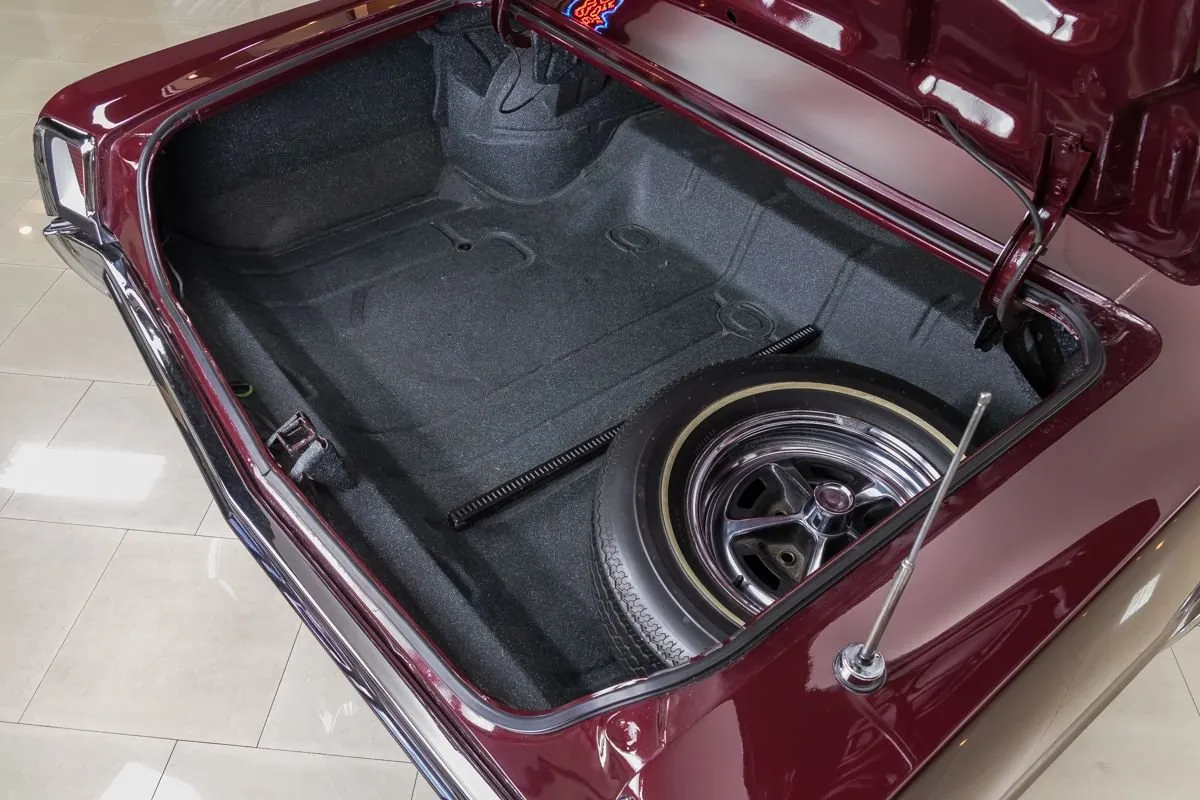 Finished in sleek Burgundy Mist, the straight body features beautiful chrome, clean panel fitment, and a solid undercarriage with new fuel tank, body mounts, and brake lines. It rides on 14” wheels wrapped in BFGoodrich 225/70R14 tires.