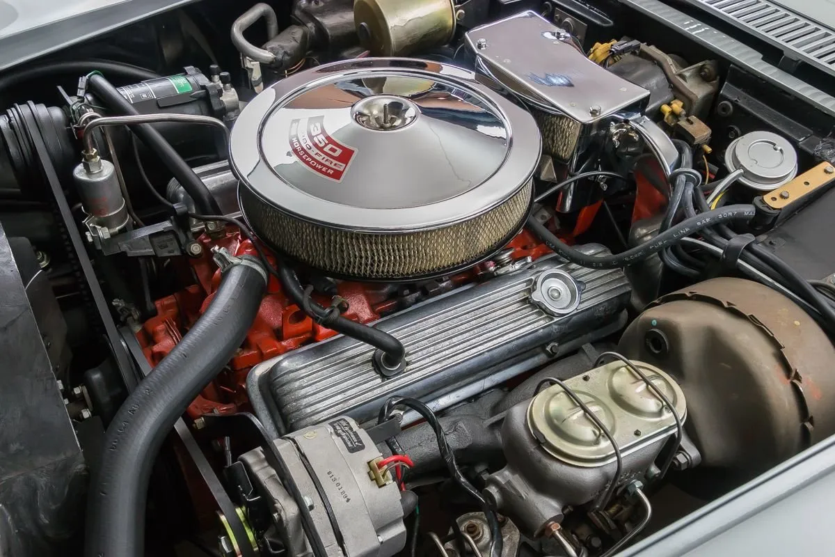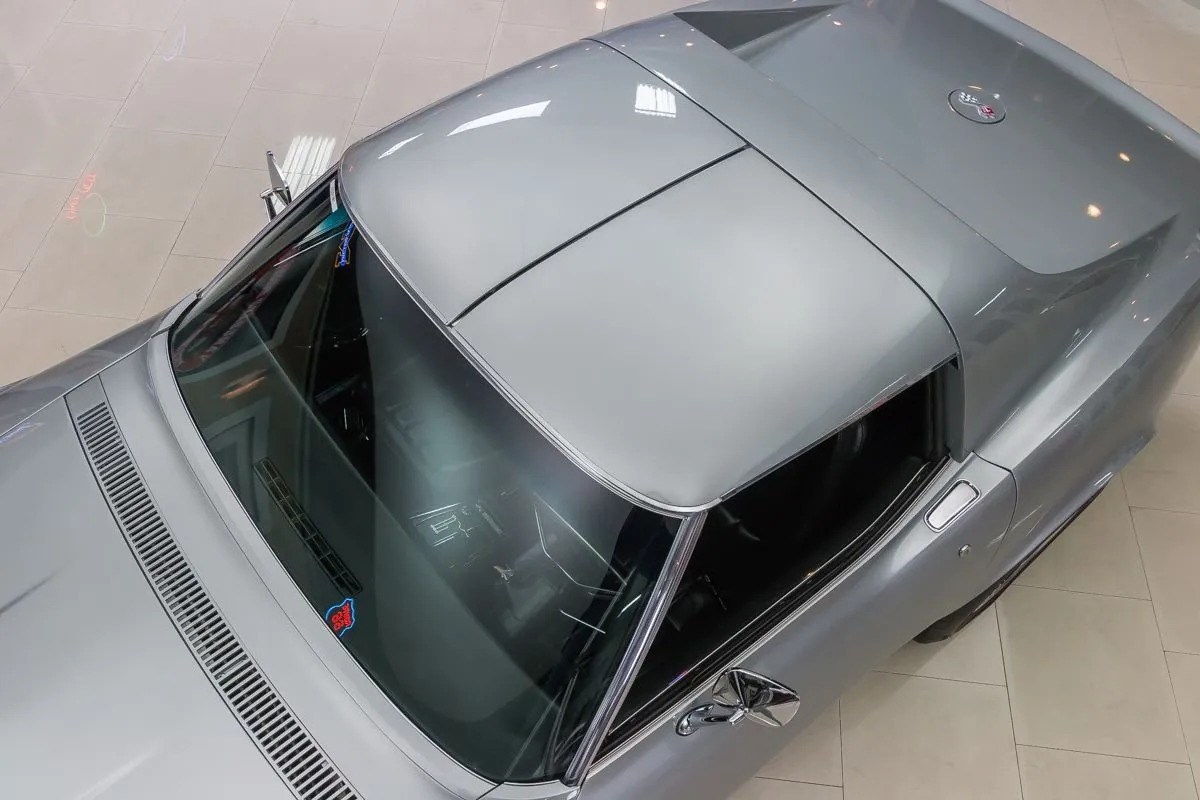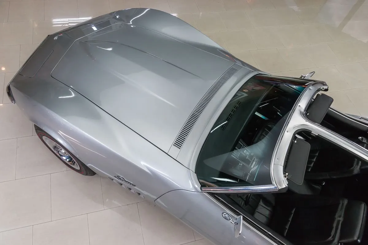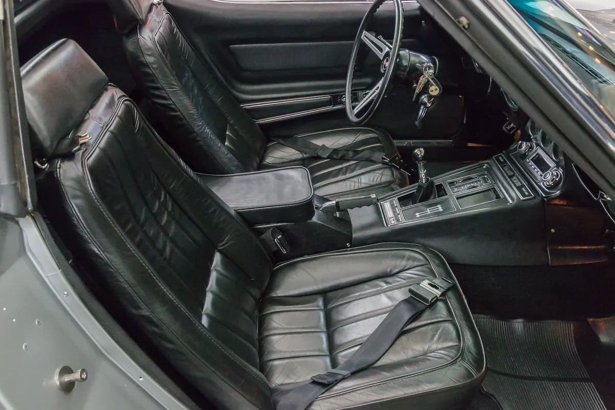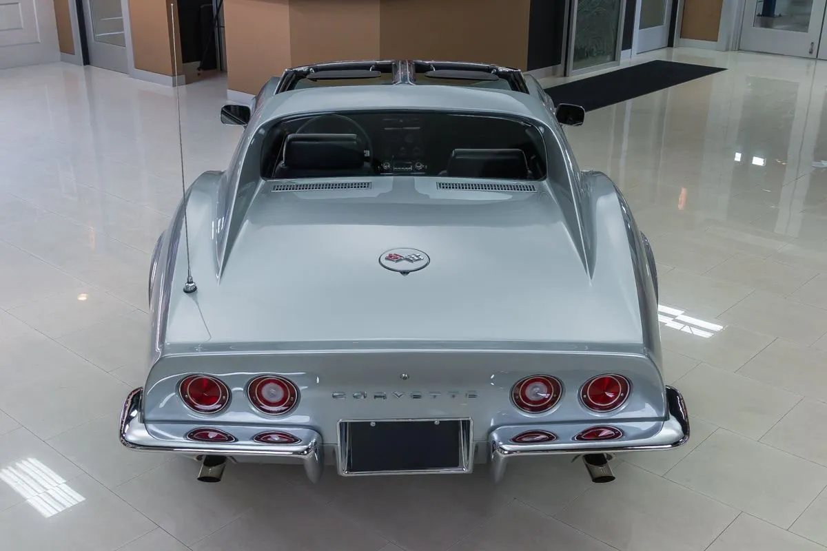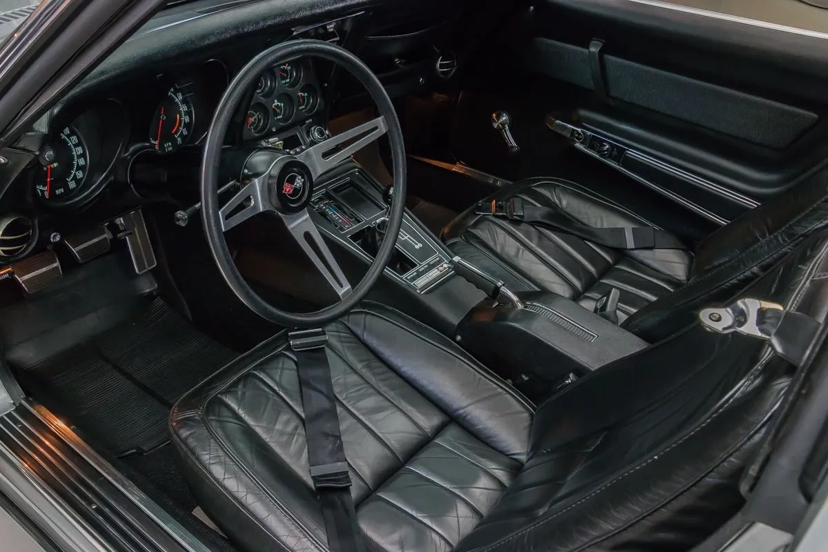 1969 Chevrolet Corvette T-Top Coupe in Cortez Silver over Black Interior. This classic Corvette features a numbers-matching L46 350ci V8 producing 350 horsepower, paired with its original Muncie M20 4-speed manual transmission. With just 81,000 original miles and one long-term owner for 36 years, it underwent a full frame-off restoration in 2002 and has been sparingly driven since.