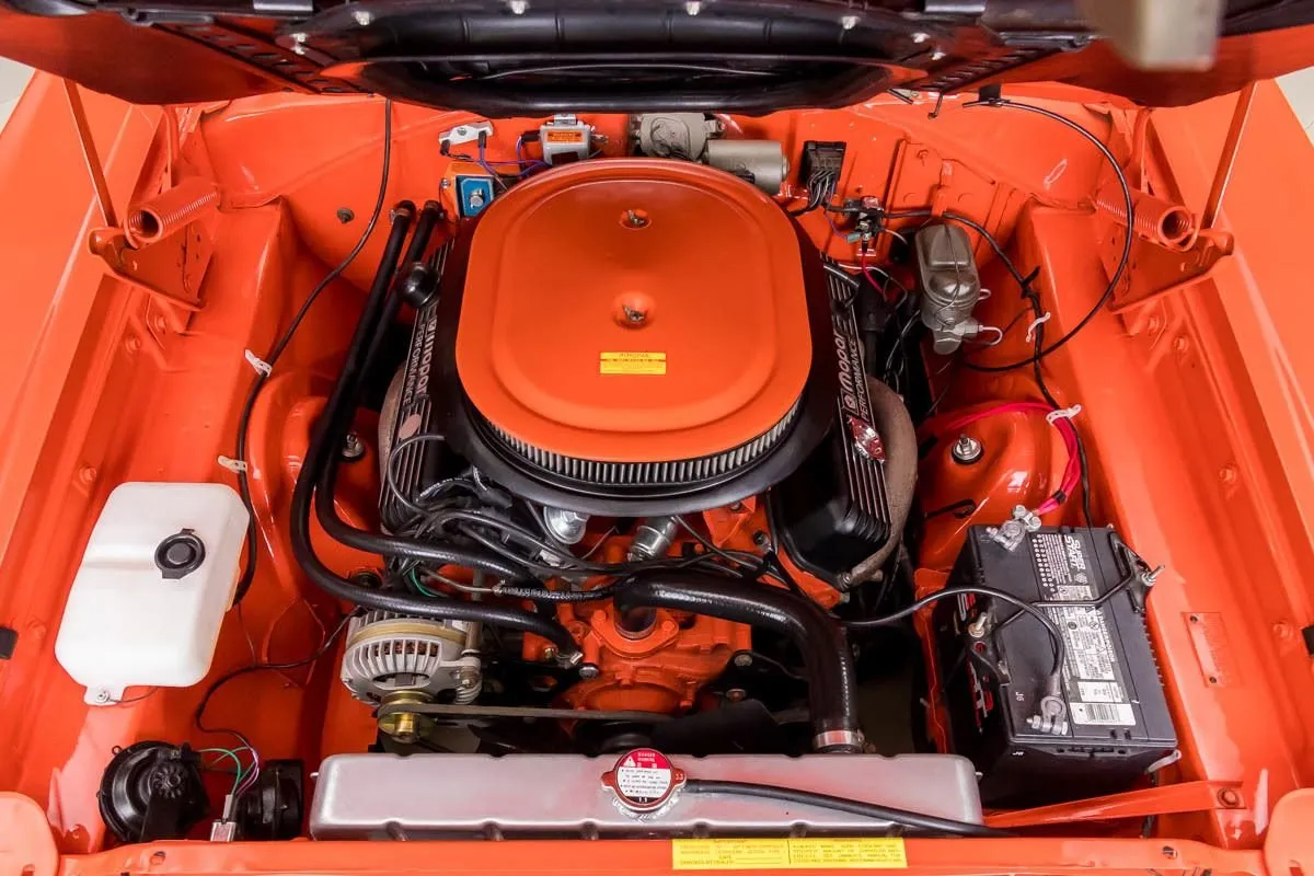 Finished in its original high-impact orange, the car features a clean black vinyl top, excellent chrome, and fresh trim. Panel fitment is precise, with clean door jambs, solid quarters, and detailed undercarriage. It rides on Magnum 500 wheels wrapped in BFGoodrich Radial T/As.