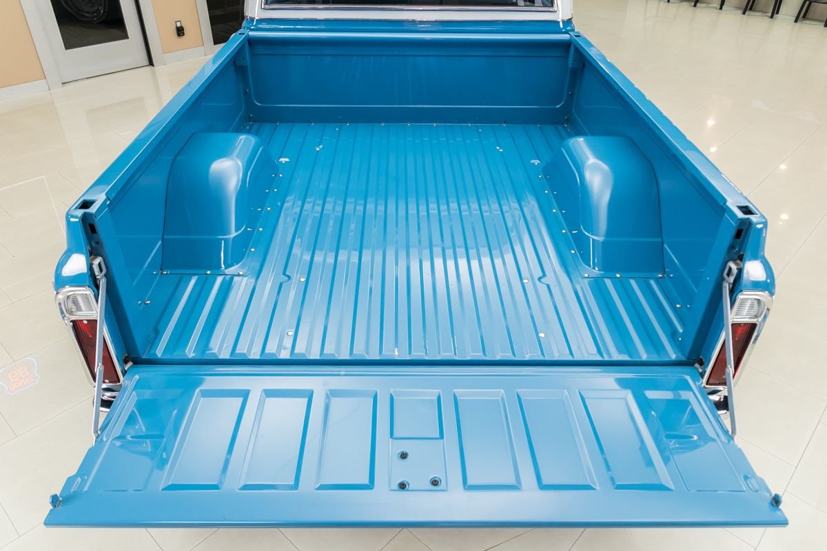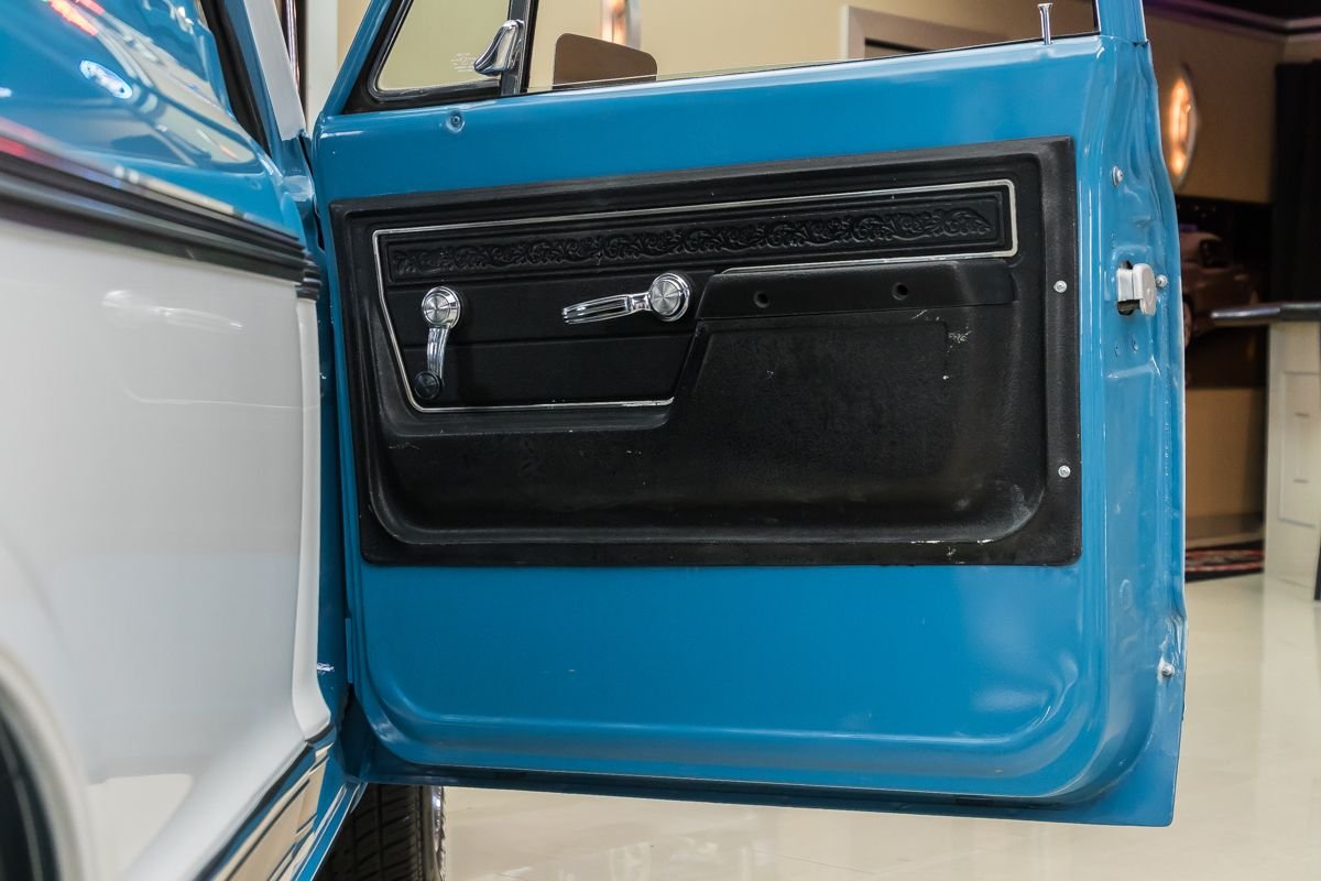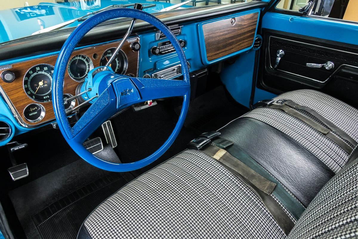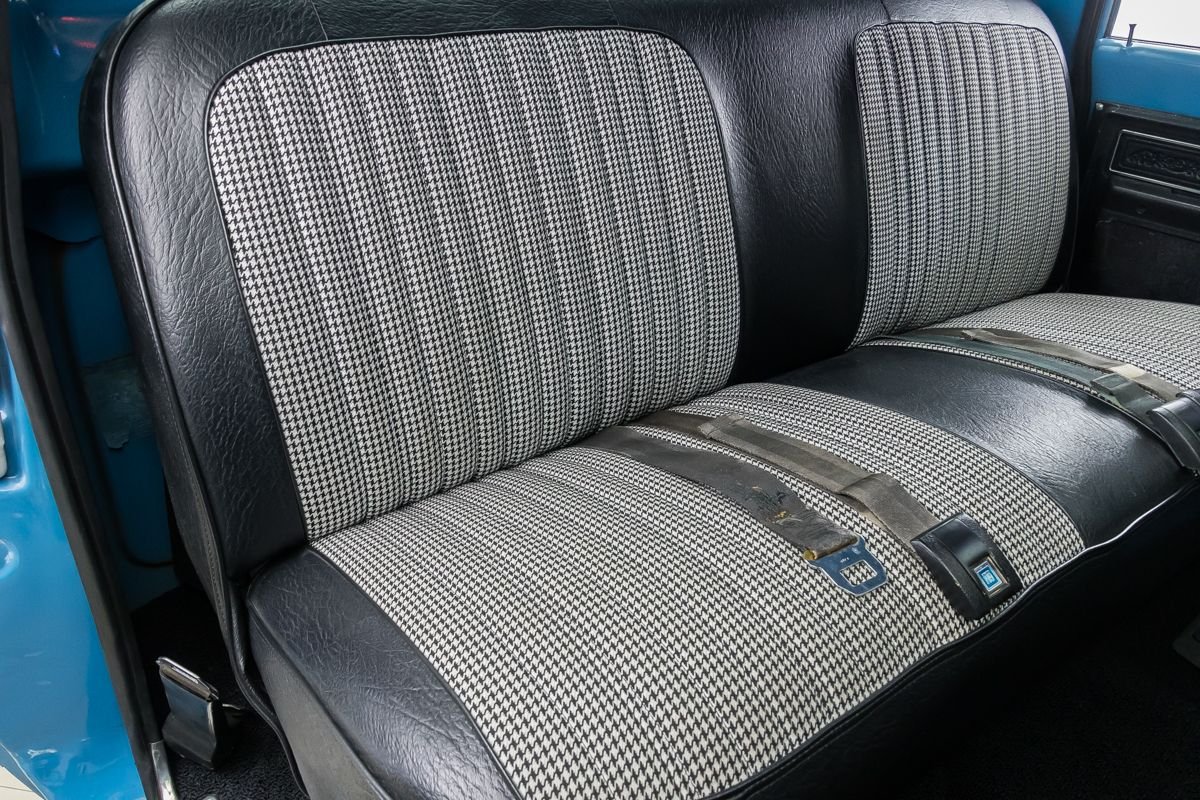 1973 Chevrolet C10 Pickup in Blue and White Two-Tone over Houndstooth Interior.